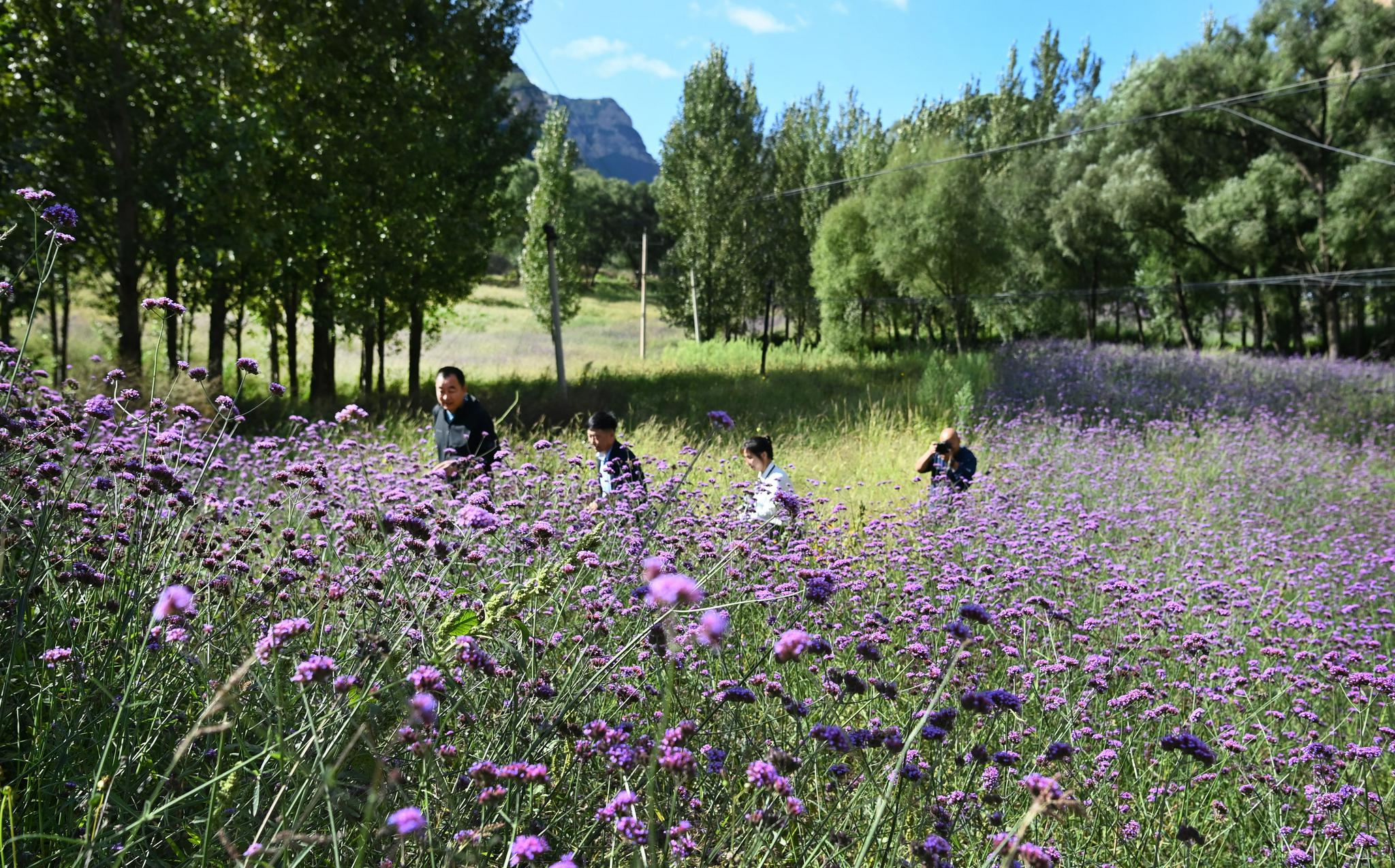 游人在红石塄乡的乡村花海里游览(9月23日摄)。新华社记者 柴婷 摄