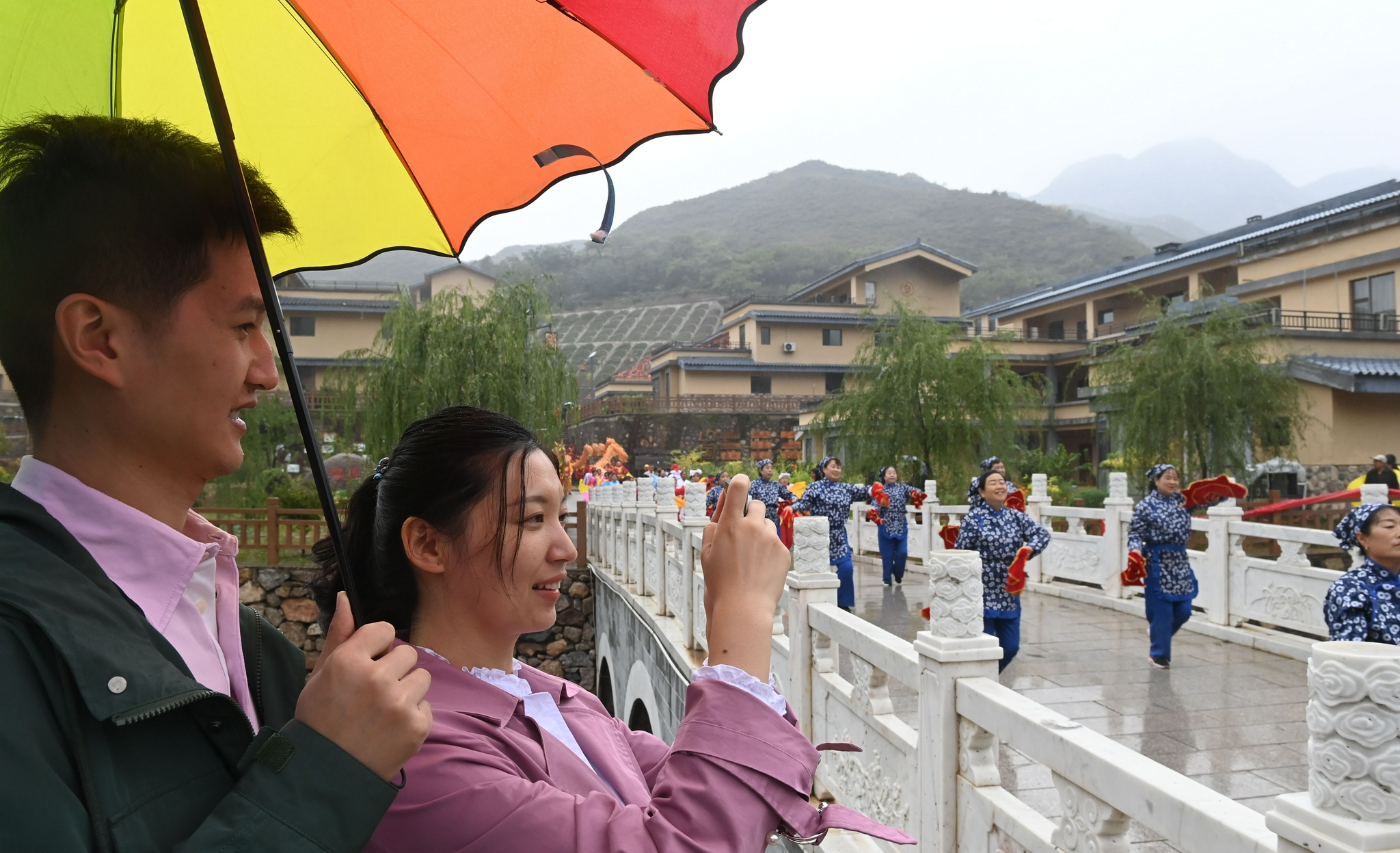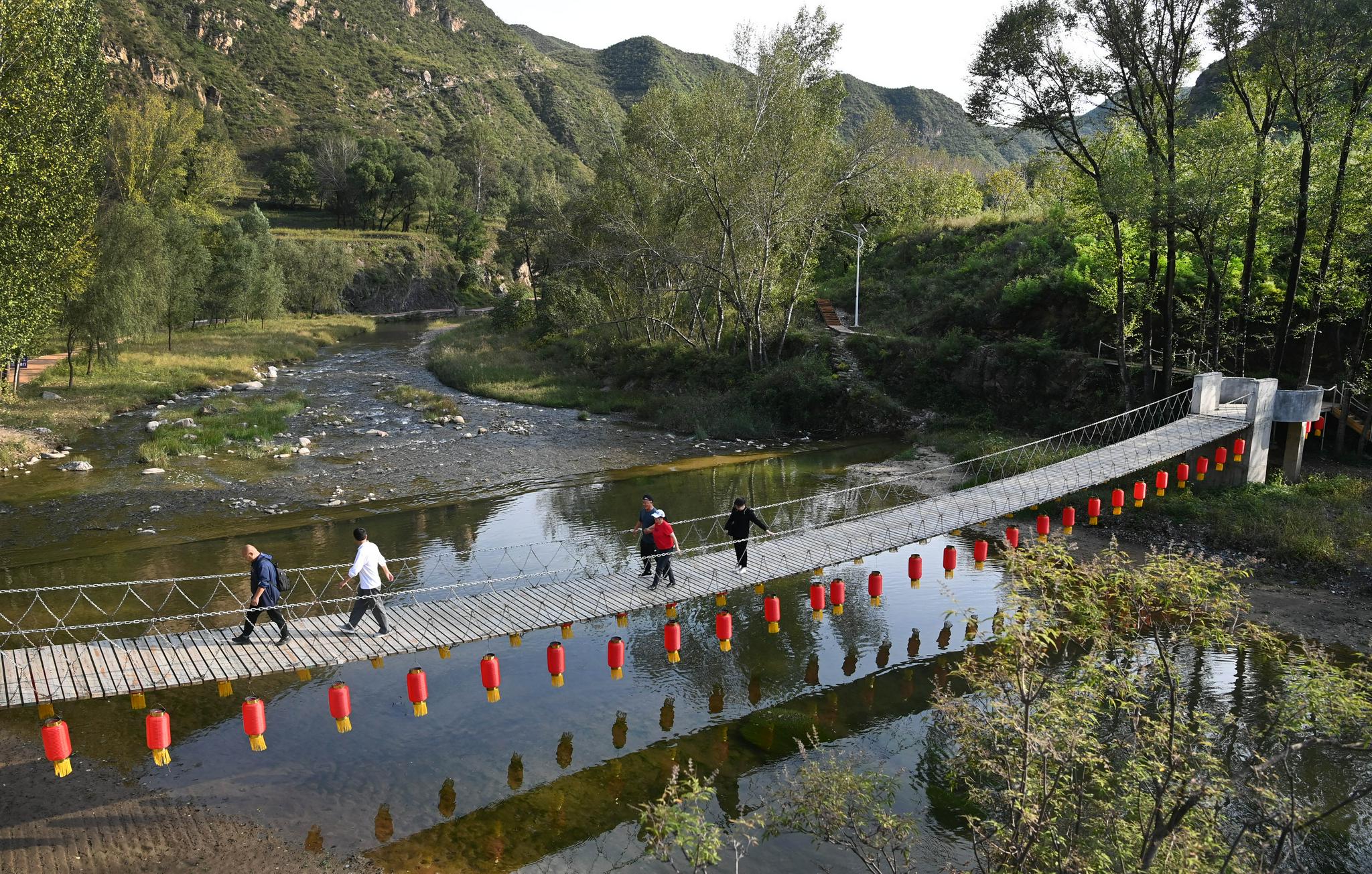 游客在灵丘县独峪乡花塔村游玩(9月25日摄)。新华社发(李涛摄)