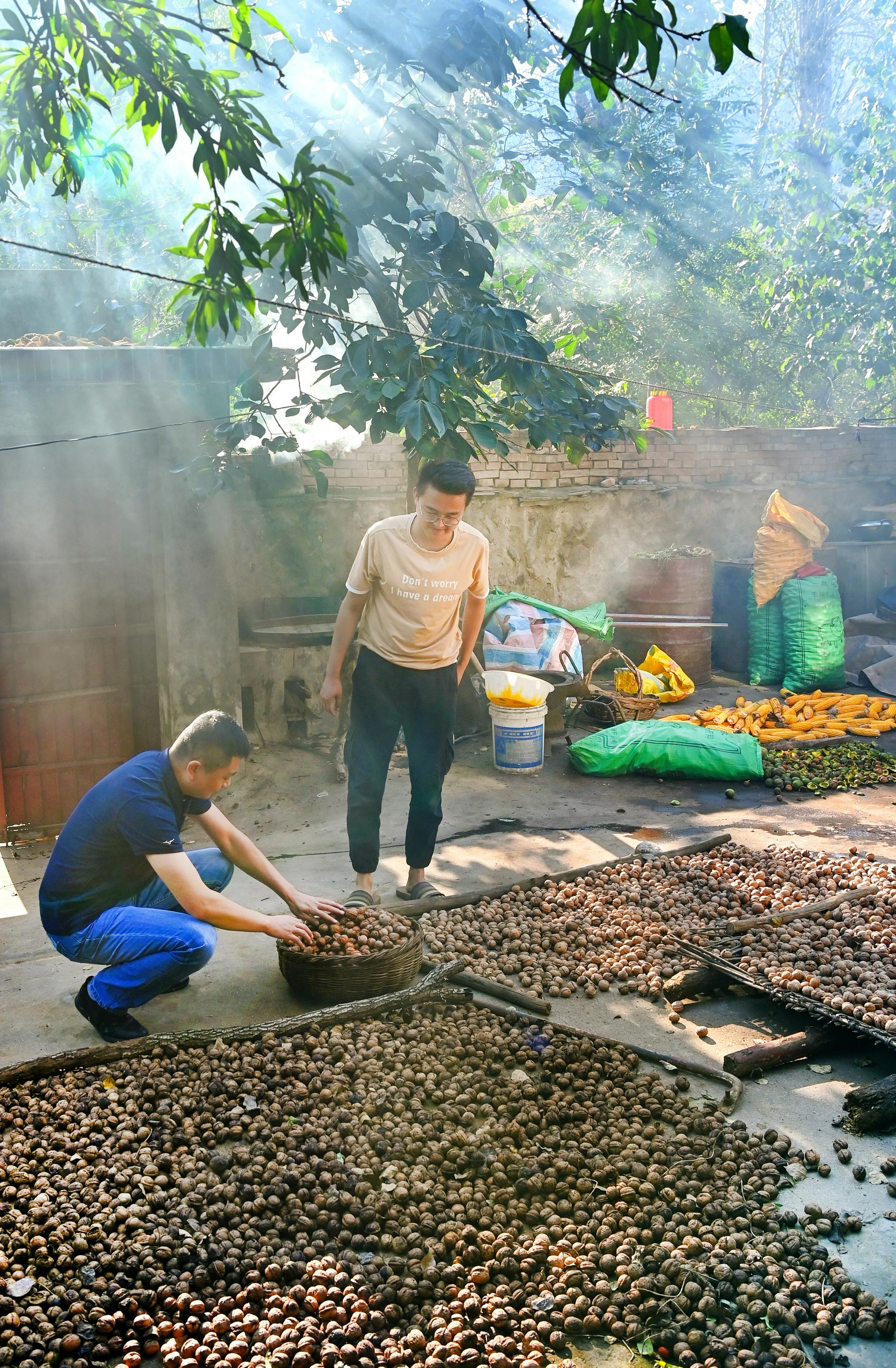 游客在独峪乡花塔村的农家小院里选购新鲜核桃(9月22日摄)。新华社发(李涛摄)