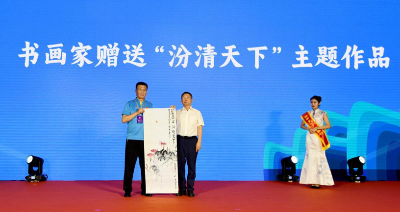 活动现场,著名书画家、齐派非物质文化遗产传承人李宝志为杏花村汾酒专业镇全国行活动赠送“盛世牵牛、汾清天下 ”创意国画,白小勤在“汾清天下”宝印上打卡,为“汾清天下”杏花村汾酒专业镇全国行留下第二道华彩印记。