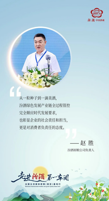 从沁县到甘肃山丹马场,从三晋大地到张北坝上,留下了汾酒人千里寻粮的足迹与决心,正是这种行业领先的绿色原粮基地,塑造了绿色品质的内核,让世界看到中国白酒的品质与实力。汾酒集团将继续坚守绿色产酿源头,夯实清香品质基础,守护初心、匠心、“粮”心,以至纯、至清、至净的品质,全方位推动汾酒高质量发展。