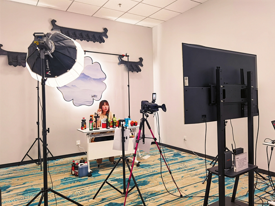 搭乘互联网快车,加快数字化提升,令人眼前一亮。走进设在美锦醋业办公楼内的清徐乡村e镇,新鲜元素颇多,最有人气的莫过于直播间。3间小屋成了老陈醋触“电”入“网”的港湾,聚光灯下,一位年轻女主播正在进行直播,桌上摆放着的各类醋产品,成为直播间内当仁不让的主角。
