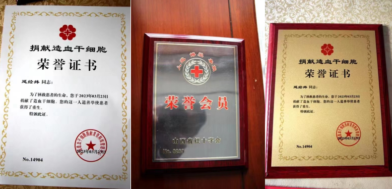 2023年3月23日,在省市县红十字会的帮助下,延经纬入住山西医科大学第二医院,准备进行造血干细胞捐献。捐献过程中,看着被机器逐渐分离出来的鲜红的血浆,即将被注入血液病患者的身体,重新燃起对方生活的希望,延经纬觉得非常值得。