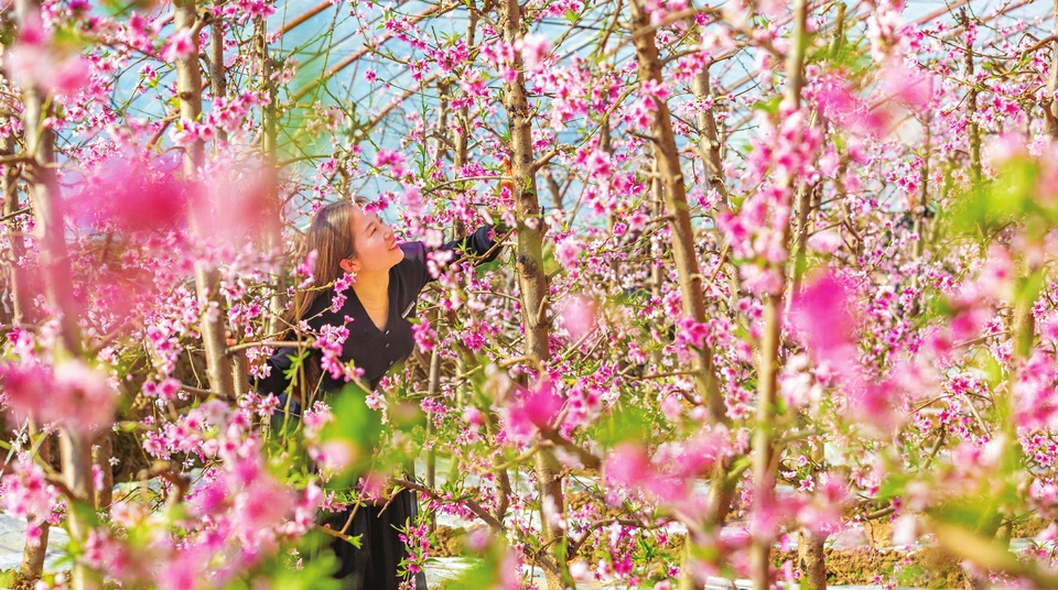大棚温暖如春 油桃花争奇斗艳乡村图片展播