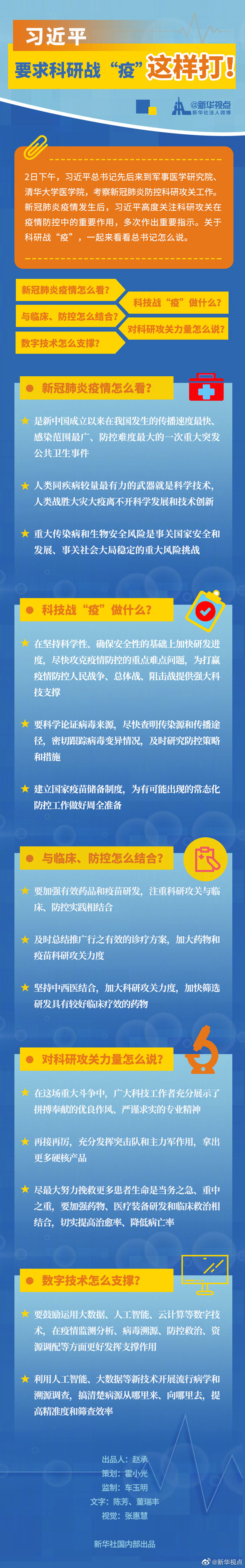 新华社北京3月2日电 题:为打赢疫情防控阻击战提供科技支撑——习近平总书记在北京考察新冠肺炎防控科研攻关工作时的重要讲话指明方向催人奋进